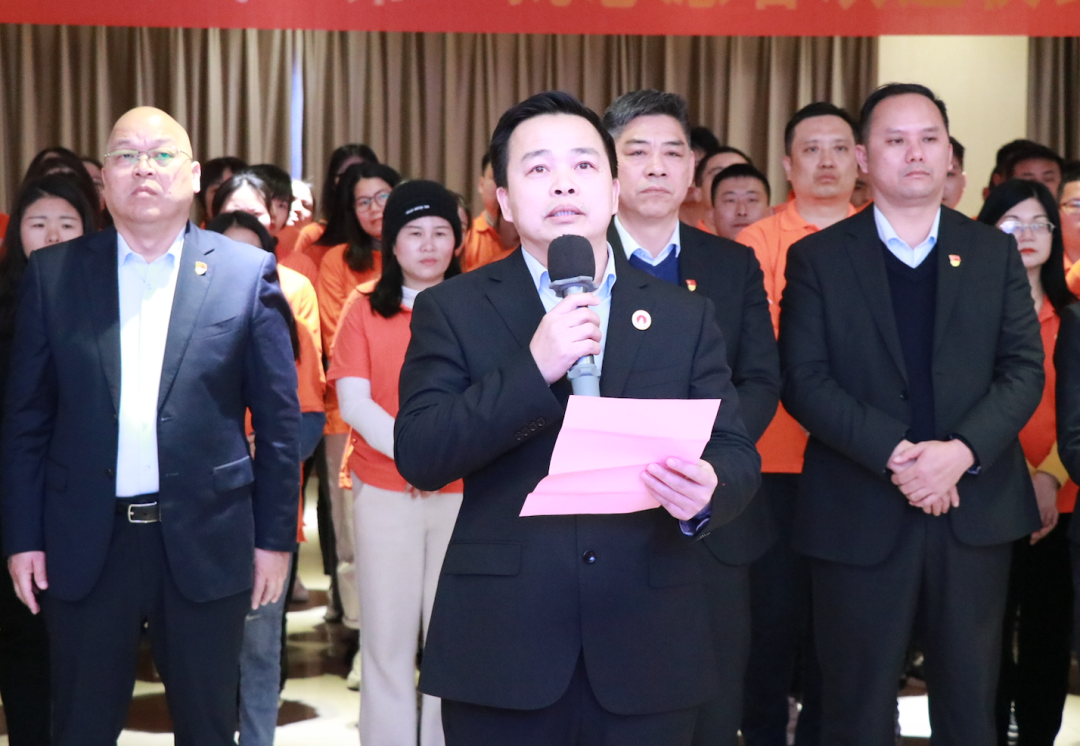 仪式上,海南生产基地副总经理李培湖、广西生产基地总经理韦天宝先后致辞,他们首先感谢并肯定了第一批保供志愿者在保供生产中所做的贡献,同时,也向春节期间前来支援的志愿者们表示欢迎及感谢。
