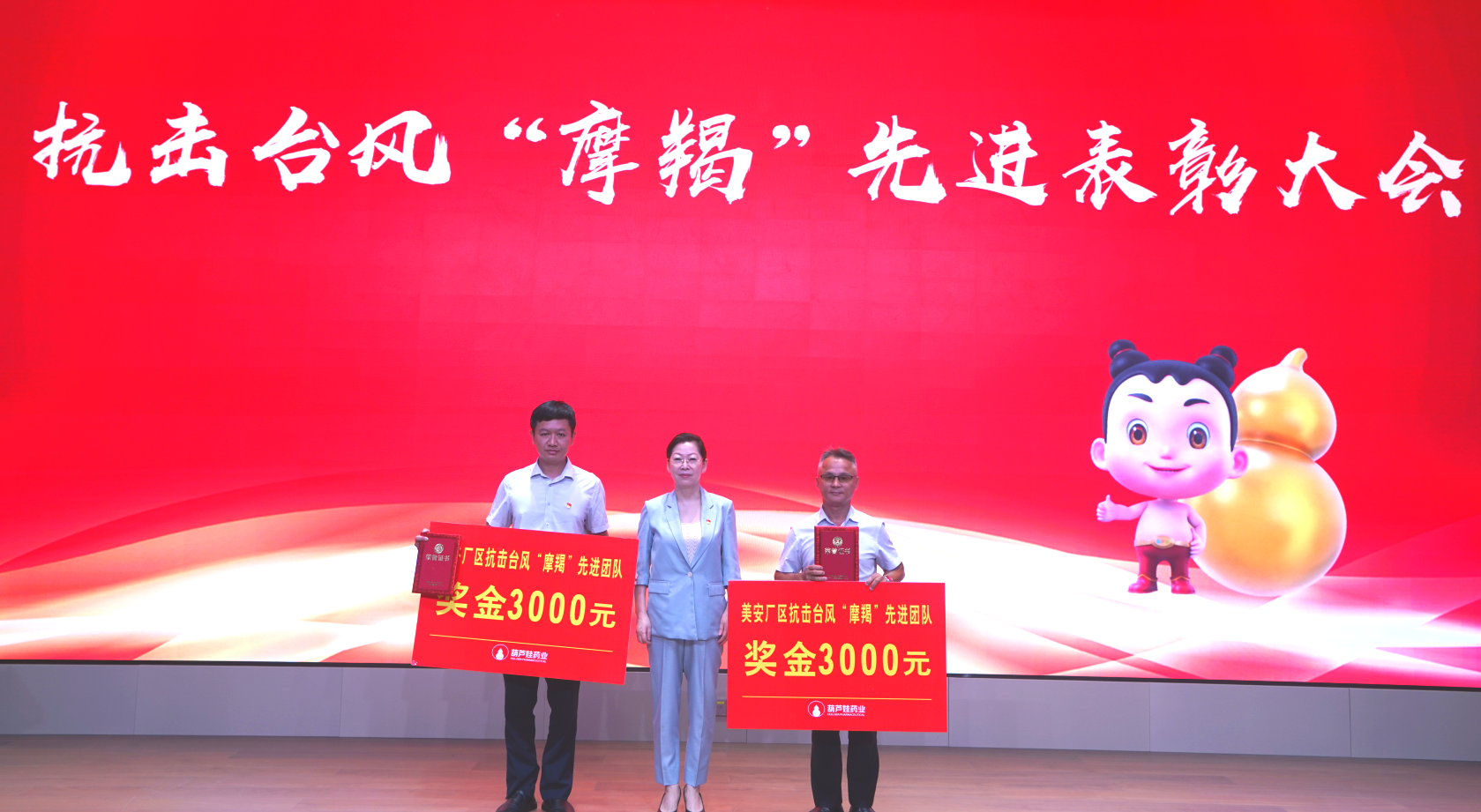 集团党委书记、董事长刘景萍向受表彰的先进个人和团队表示祝贺,向抗击台风“摩羯”的全体员工表示敬意。她指出这次抗台救灾工作充分展示了人生就是博人的担当精神和奋斗精神,是集团企业文化建设的重要成果。集团党委统筹组织、群团组织群策群力,全体党员和广大员工积极参与,在抗台抢险、复工复产工作有序推进的同时,积极承担社会责任向受灾地区和受灾居民施以援手、捐资捐物,体现了人生就是博药业集团的责任担当。她要求全体员工在今后的工作中,要继续发扬这种精神,积极应对各类风险挑战,奋力推进自贸港医药工业中国式现代化建设。